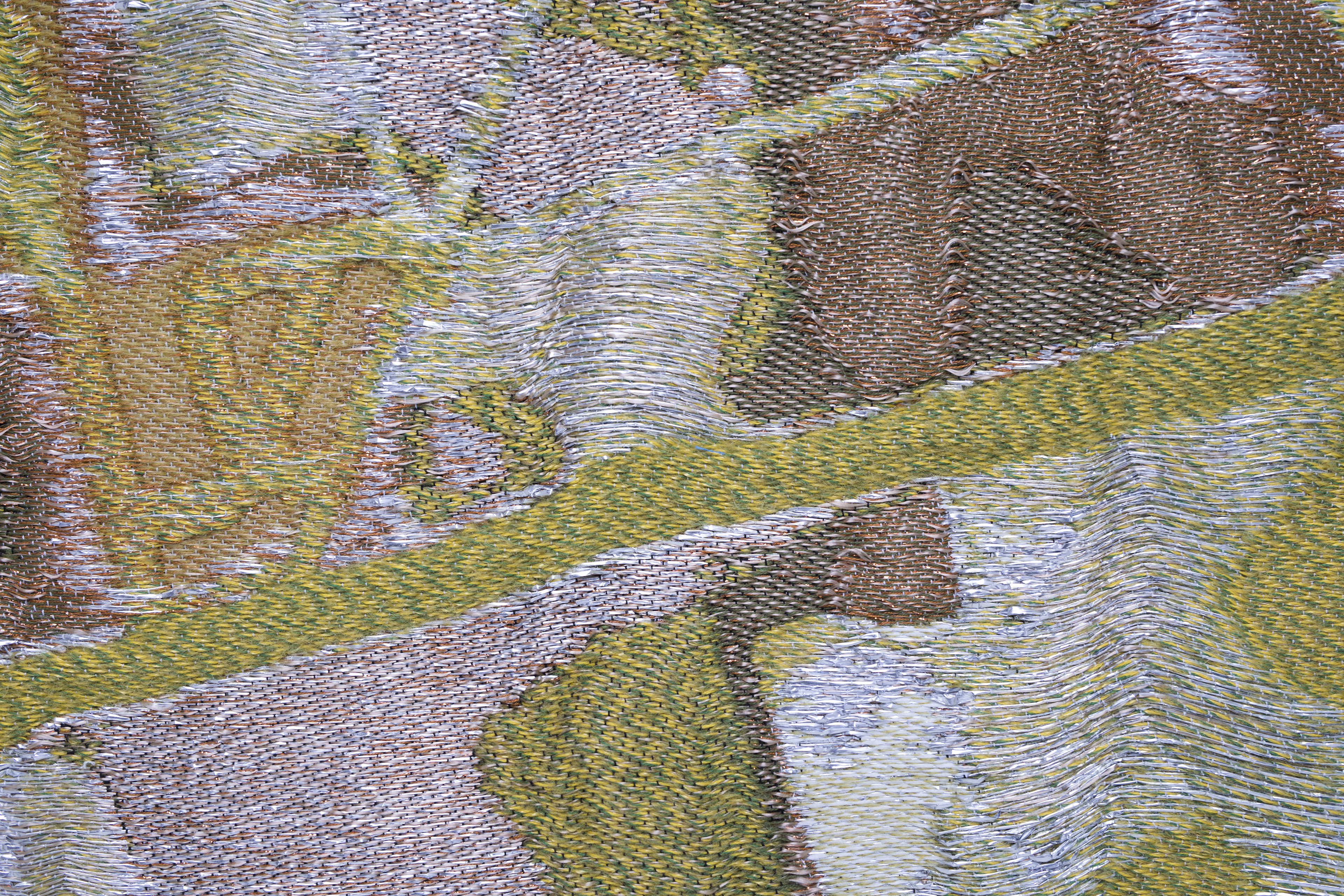 This monumental tapestry by textile artist Kari Dyrdal is a prominent feature of the new Aula at the University Museum of Bergen, Norway. The design is based on cross-sections of rock formations around Bergen. The challenge for the TextielLab and the artist was to create a textile with a strong tactile presence that also has an intellectual dimension.