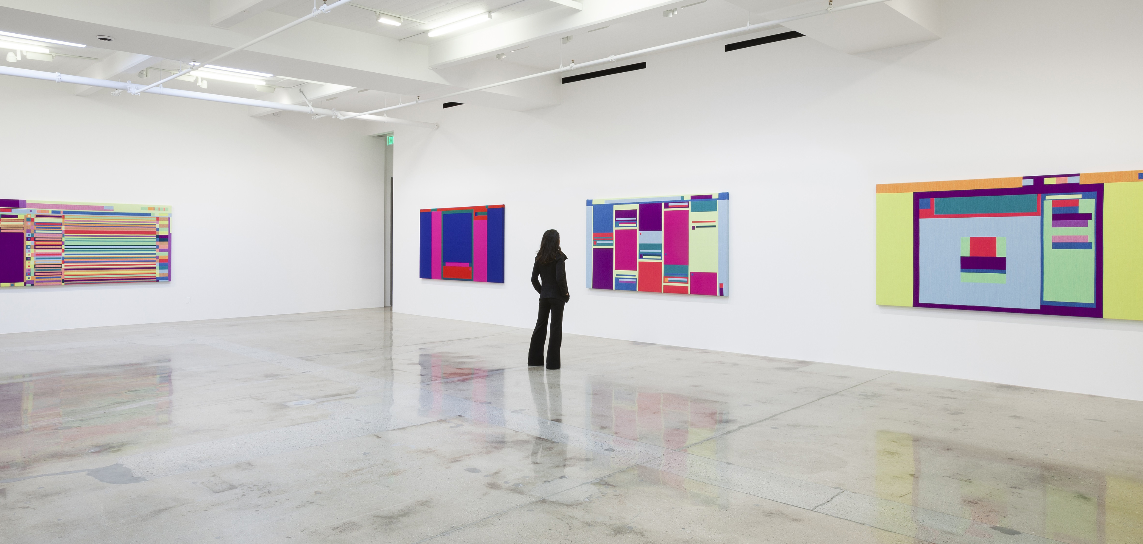 The challenge was to match the colours of the tapestries with the colours released by Google for Softwear. Another challenge was to emphasise the different structures and textures of the fabric samples that were incorporated in the collages. For example, a knitted sample also had to have a knitted structure in the tapestry. Van Eijk used more than 40 different yarns, including mohair, wool, organic cotton, linen and metal.