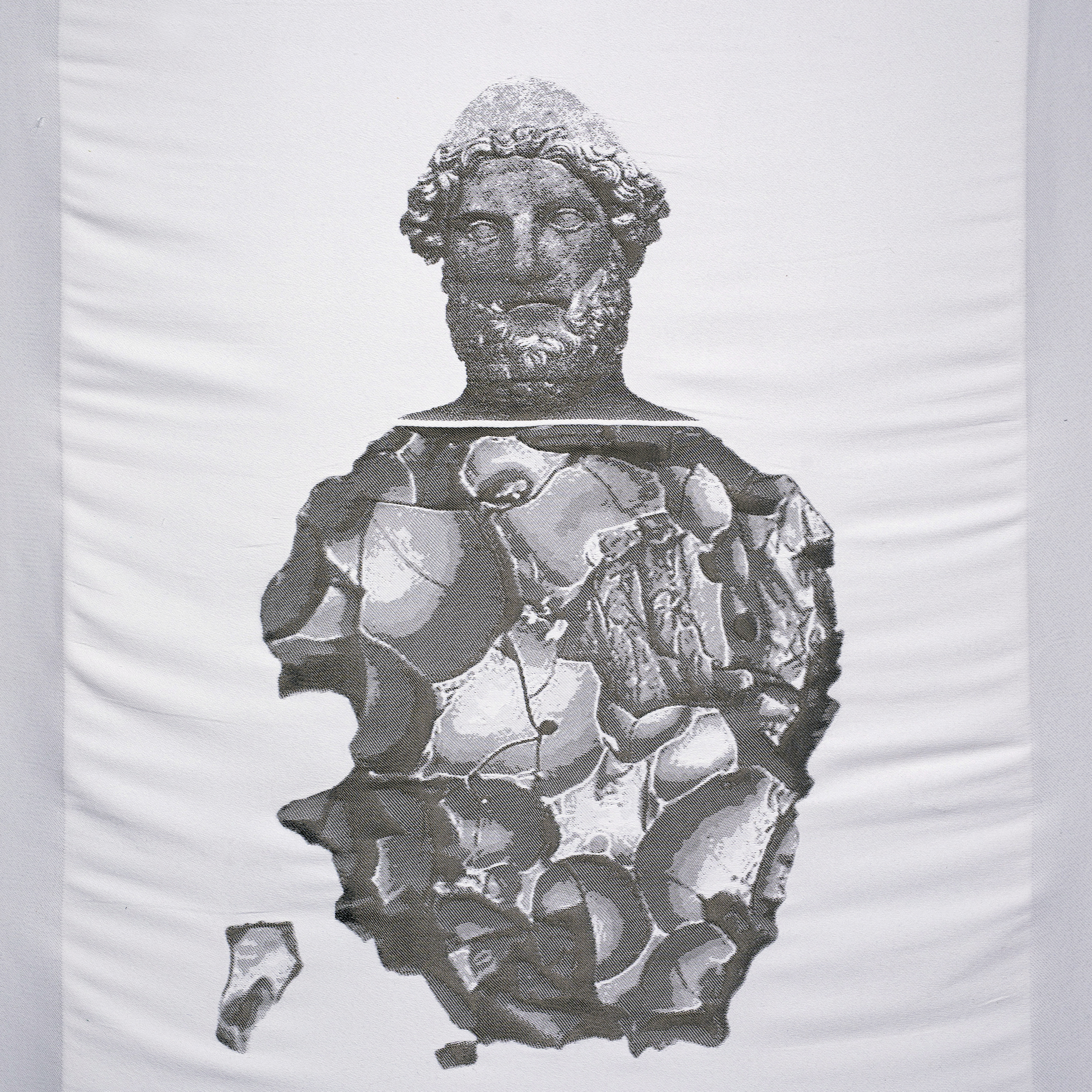 Google and trendwatcher Lidewij Edelkoort asked Kiki van Eijk to produce eight woven still lives with Google’s line of cloth-covered products. Van Eijk made collages of hand-cut fabric samples, which she photographed, digitally enlarged and translated into tapestries in which the details and textures of the fabric samples are clearly evident.