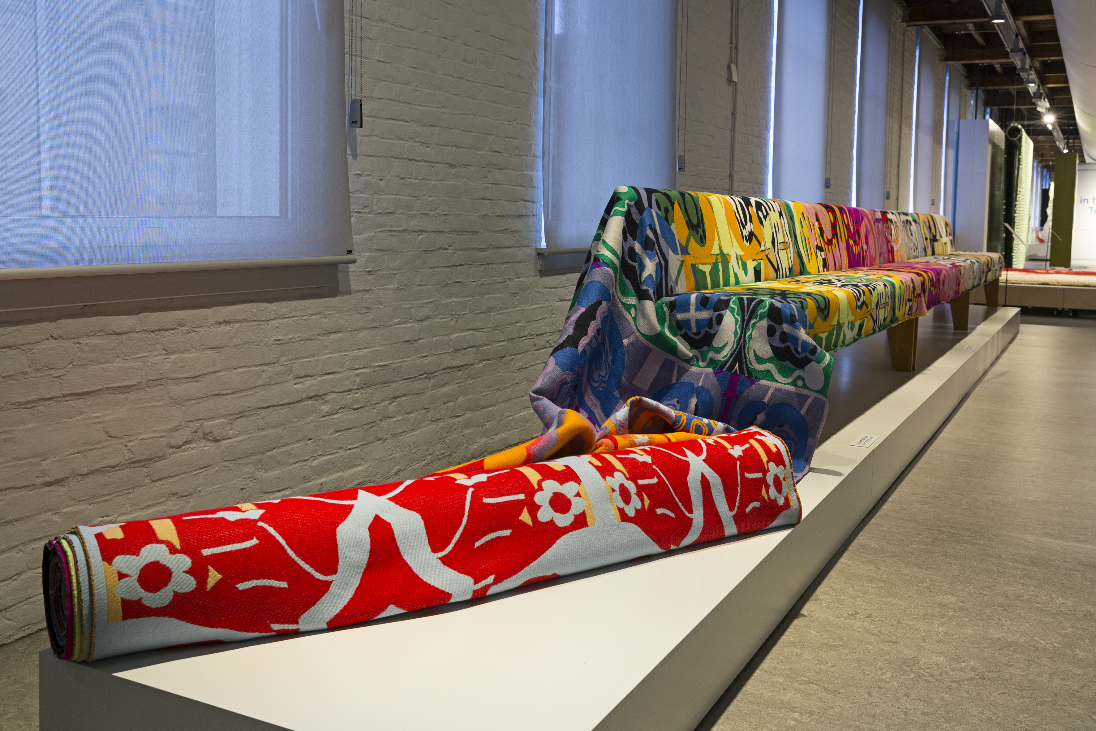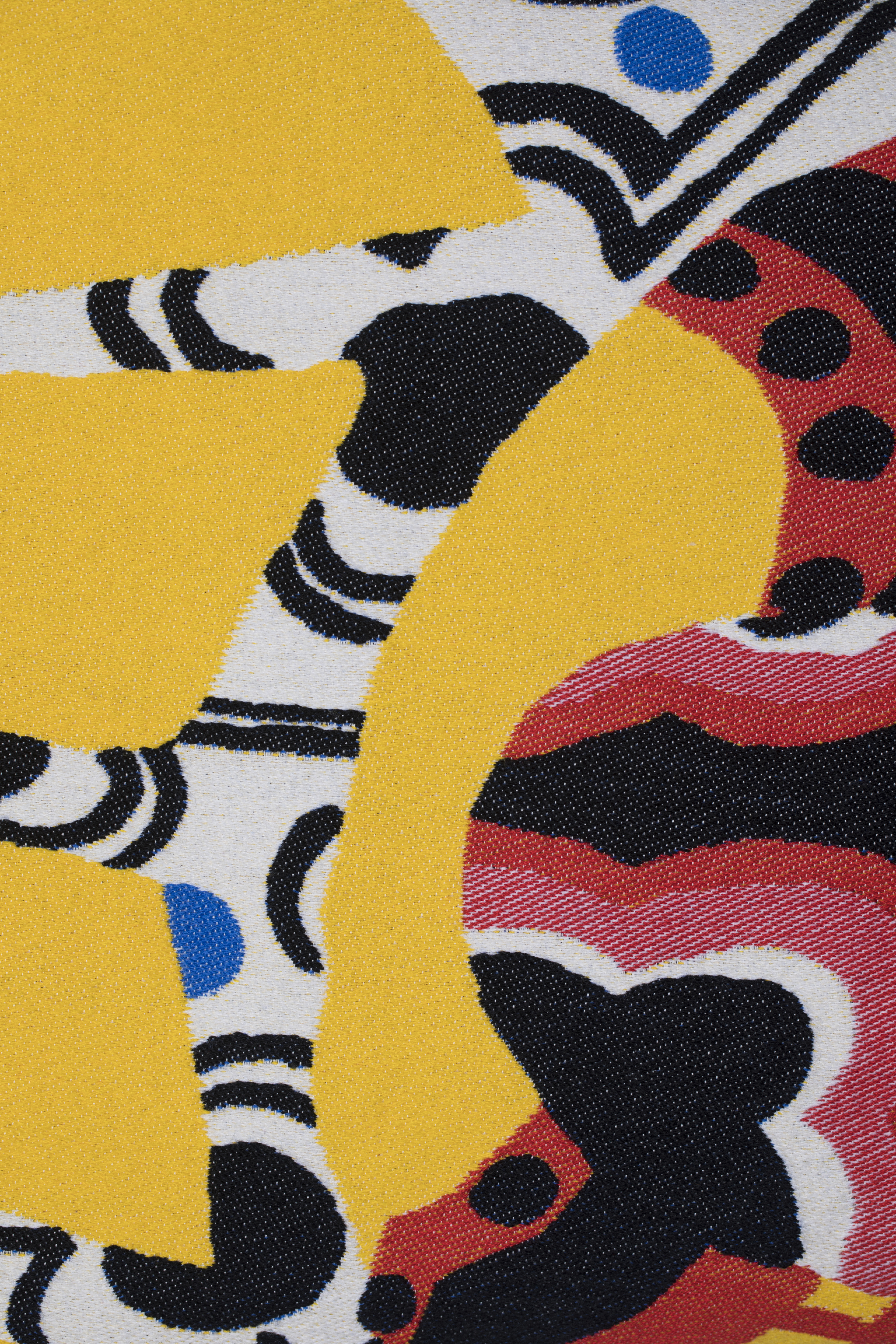 In 1928, Gunta Stölzl wove one of her most famous tapestries, ‘5 Chöre’. For Marijn van Kreij, this tapestry, or to be precise, reproductions of it and her design sketches, formed the basis of this collection commission. He took an existing image as his starting point and continued to work on it. “When studying and reproducing such an image, differences naturally arise,” he said of this approach. “It is a form of ‘editing’ someone else’s work. Consciously or unconsciously, you leave things out or change the colours. These differences and variations create the opening or thinking space I’m looking for. Because I took fragments from ‘5 Chöre’ and repeated them in different ways in my designs, an exercise arises that hopefully evokes the same kind of space or delay.” He used a computer to reproduce the fragments of cloth, including their irregularities. He was particularly interested in the sense of rhythm and colour in the original and the effective use of the different weaves. The fabric was also used for cushion covers, a reference to the Bauhaus ideal of eliminating the boundary between fine and applied art.
