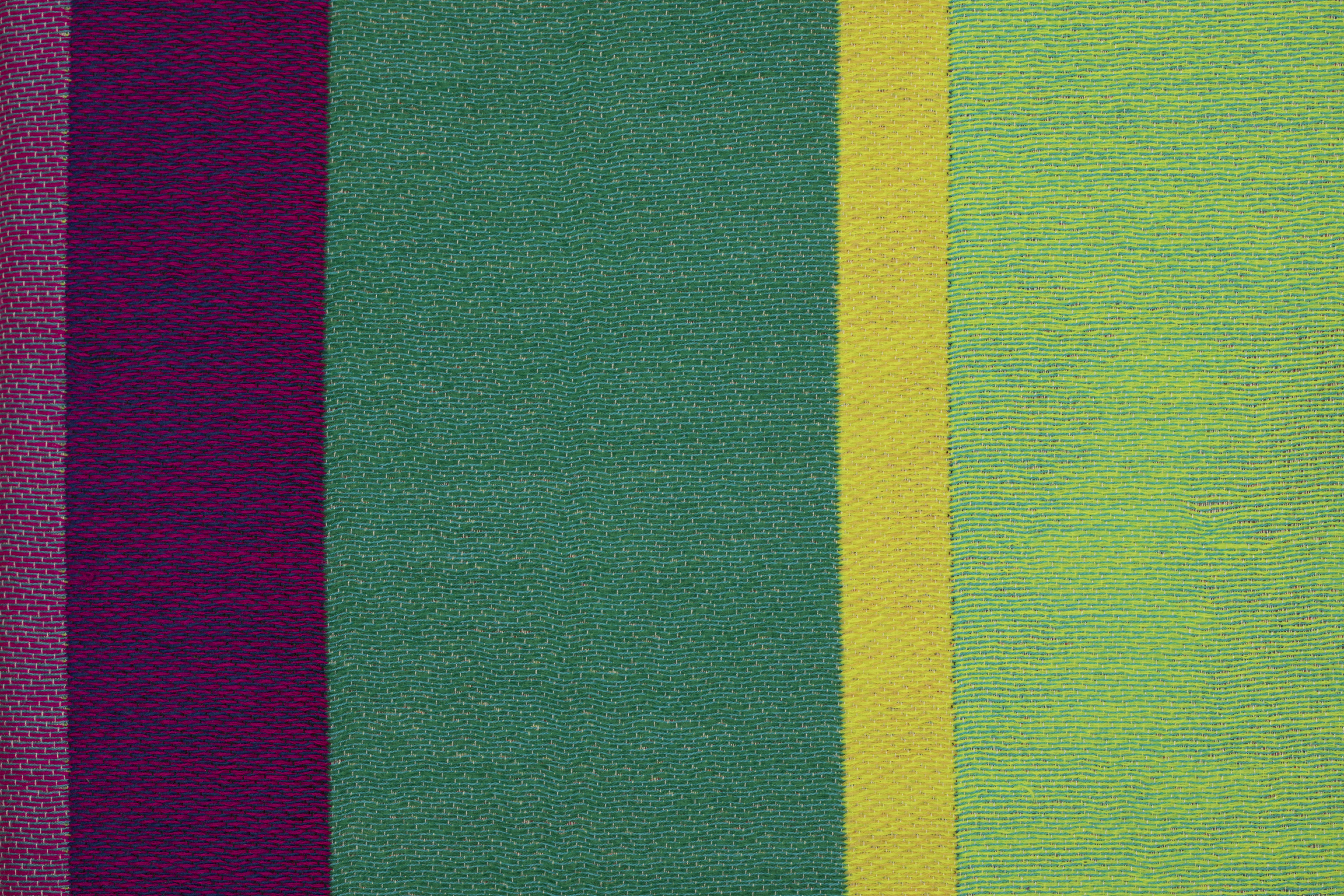 In the TextielLab, Wagner incorporated 13 different yarns in complex multi-layered bindings to create a dynamic textured fabric full of contrasts: shiny and matt, fluffy and smooth, supple and stiff − the fabric is as dynamic as language itself.